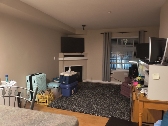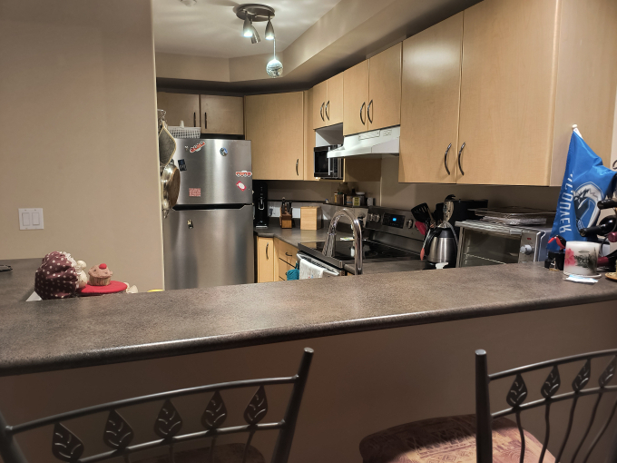 Secure building with partially furnished if desired. flexible move-in as late as Nov 1. can be short term or 1 year lease. Includes insuite laundry,gas fireplace, gym access and 1 parking stall. Tenat pays own electricity and tv,internet. 1 cat or small dog welcome.