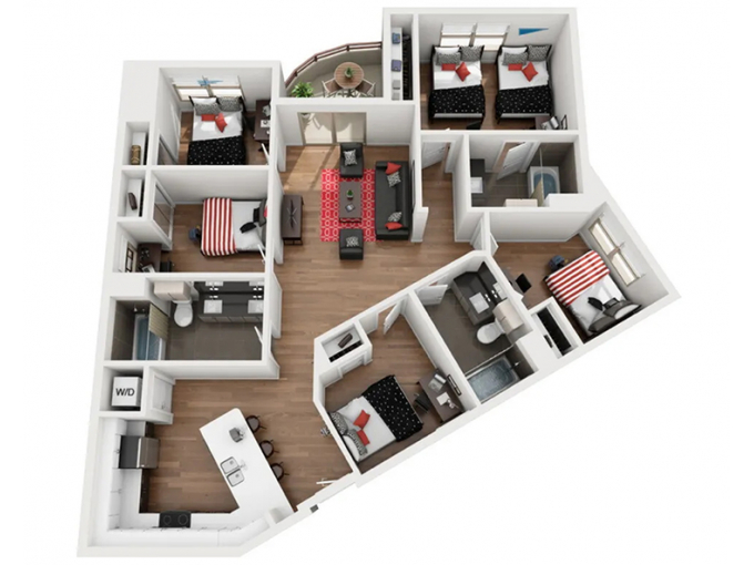 Private and Shared Bedrooms Fully Furnished Apartment Homes w/ flat panel TV included Energy Star Appliances & Granite Countertops Full-Size Washers & Dryers in each apartment