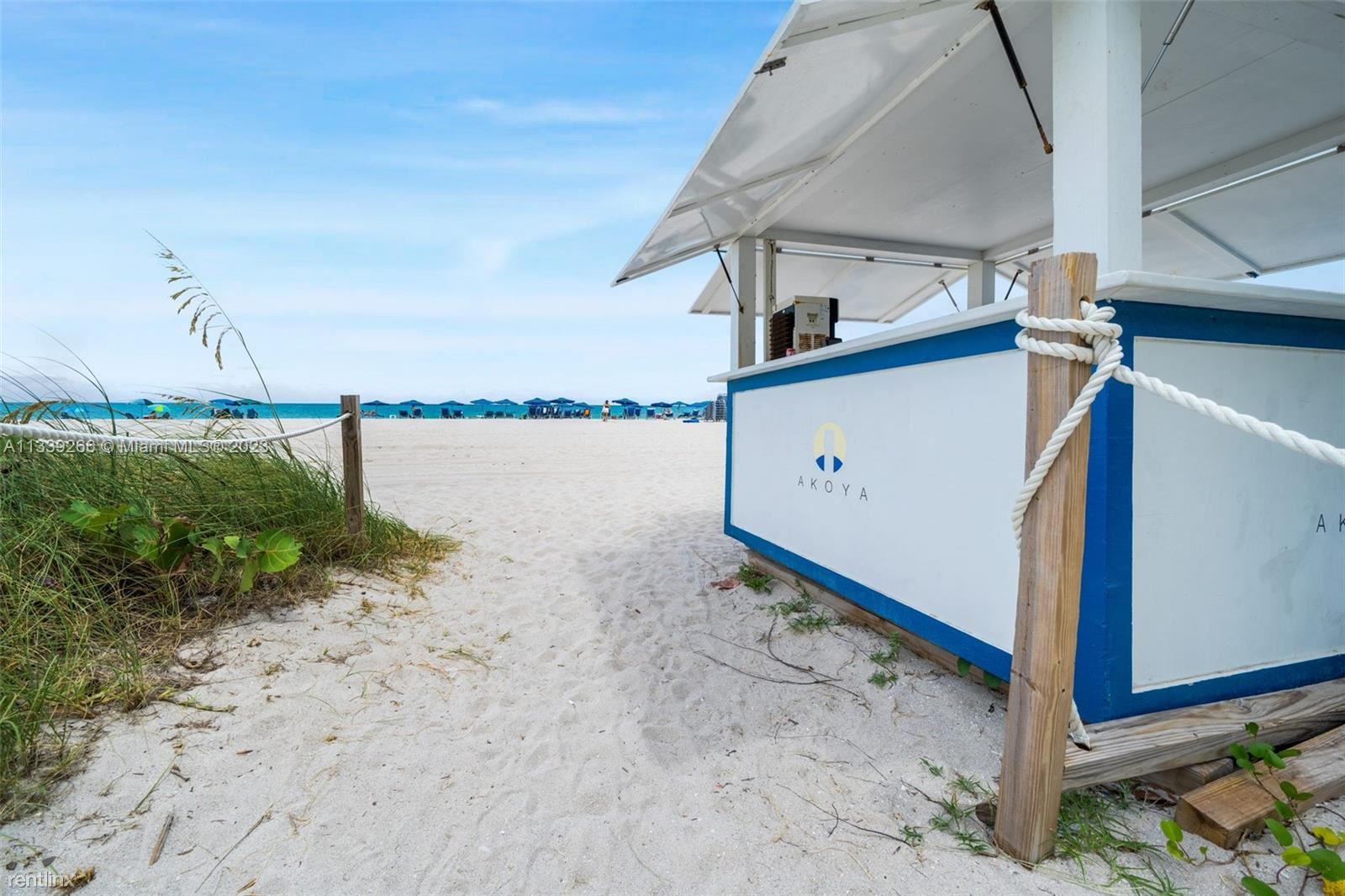 Akoya Condominiums is a 47 story, high-rise residential condominium located in Miami Beach, Florida. Built in 2004 and rising 150 meters (492 feet), Akoya Condominiums is the third tallest building in Miami Beach, after the 170 meter Blue and Green Diamonds. It was built as one of the last very tall buildings permitted in Miami Beach before a 1998 height ordinance, capping buildings at 200 feet, went into effect. The Akoya Condominiums were originally planned to be the White Diamond. Akoya has more floors than the Blue and Green Diamond buildings but does not have the diamond-shaped roof that they have. The original developer of the projects, Brazilian businessman Múcio Athayde, was forced to sell the White Diamond project in 2001 due to financial stresses that later put the other two buildings into bankruptcy. The project was completed by the MerCo Group, controlled by developer Homero Meruelo, which later also bought the nearby Deauville Hotel. The name "Akoya", referring to a type of cultured pearl, was chosen to replace the diamond theme. Akoya Condominiums is located along the beach of the Atlantic Ocean on Collins Avenue. Akoya Condominiums has 528 units, with 11 units per floor which translates to 48 floors. A modern fitness center, a tennis court, a swimming pool and racquetball facilities are available exclusively for Akoya’s residents. (RLNE2918170)