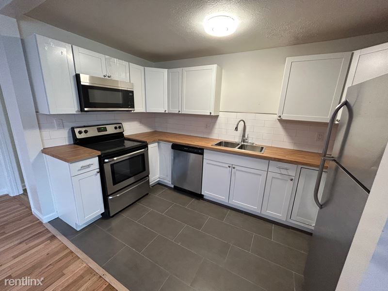 This one won't be available for long! Just renovated 3 bedroom, 2 full bathroom unit in a triplex in Carmel Clay schools. Open concept (and huge!) living room, dining room, kitchen with refinished hardwood flooring and tile (kitchen). Stainless steel appliances (refrigerator, dishwasher, stove/oven, microwave. New butcher block countertops and tile backsplash. Garbage disposal. New lighting throughout. 2 completely remodeled bathrooms. One bath with standing tile shower, tile floor, new vanity. Master bath with bathtub and newly tiled shower, new vanity, tile floor. Laundry room with washer and dryer (or can remove if you have your own). Fenced in yard in back. Close to shopping, dining, post office, Central Park in Carmel, and the Monon Trail. Easy access to 465, Meridian St., and Broadripple. **Priority given to those who fill out pre-screener with their inquiry. No pets, please.