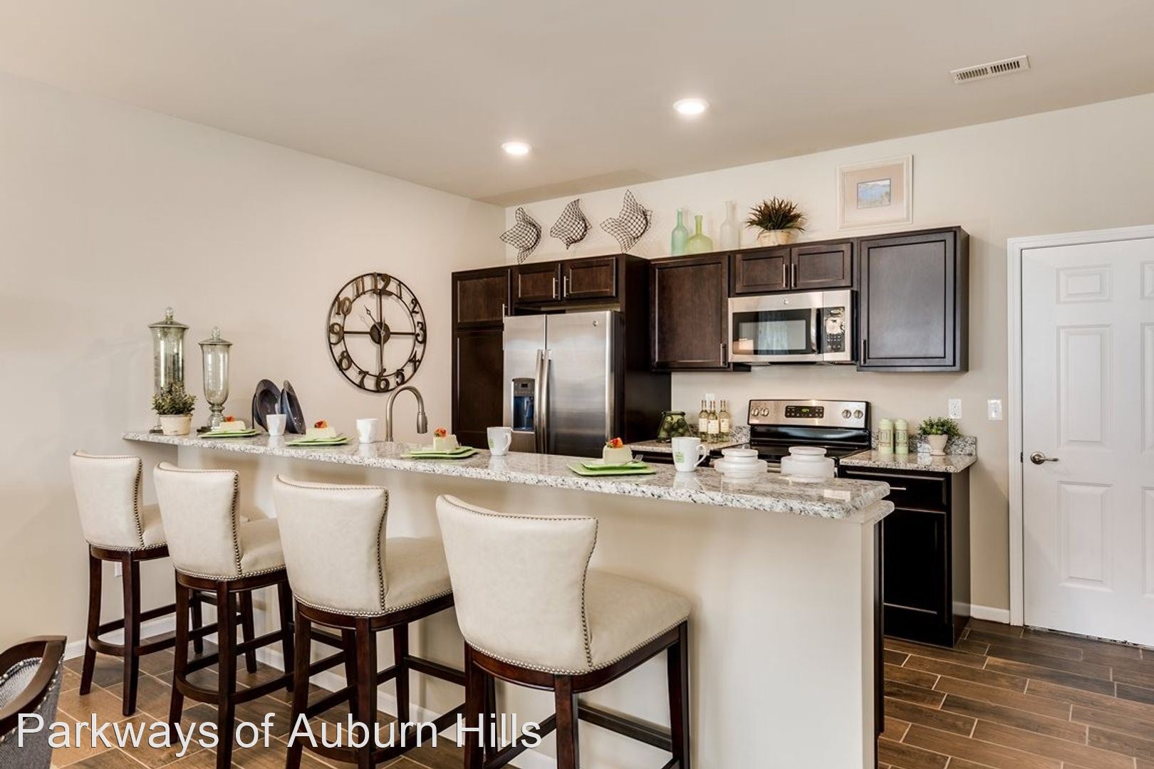 The Townhome - Modern Luxury End Unit at Parkways of Auburn Hills - The luxurious 3 bedroom, 2.5 baths Townhome provides a tranquil and exceptional setting. It has the convenience of complete privacy with no one living above or below you. The attached two-car garage has plenty of space for stowing away belongings and provides protection from the elements with an effortless walk to kitchen for unloading groceries.