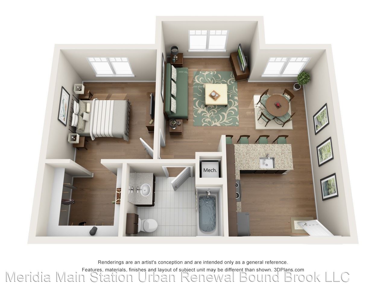 - Your daily commute from Meridia Main Station is one you don’t have to stress about. The Bound Brook Station is only 0.2 miles away for your living convenience in between I-287 and U.S. 22. Known for its many graduate programs, Rutgers University is seven miles away so you can easily explore educational pursuits and a beautiful campus. Home of the Scarlet Knights, cheer on Rutgers’ football team at HighPoint Stadium across from Johnson Park. Apartments In Bound Brook NJ At Meridia Main Station, live the life of luxury in any one of our one or two bedroom apartment homes. With up to 851 square feet, enjoy spacious living right in the city. At the corner of Bound Brook, Green Brook and Raritan River, enjoy breathtaking views through expansive windows and your very own eye-catching balcony. Feel right at home the moment you walk on rich hardwood flooring throughout with beautiful modern detail. Premium kitchen packages feature generous granite countertops and superior appliances for your living convenience.