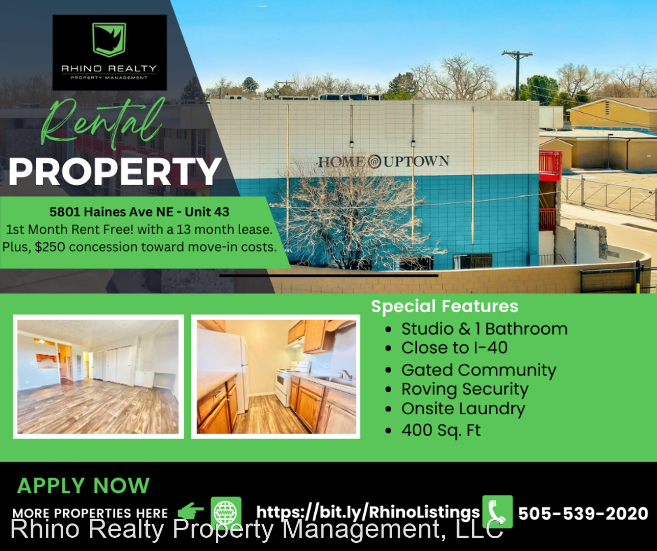 1st Month Rent Free! with a 13 month lease.