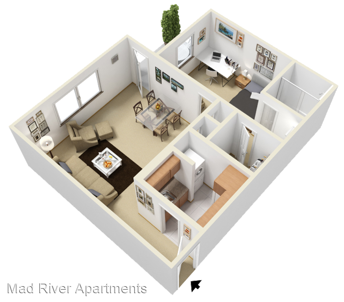 The Riverside - Roomy two bedroom, two bath with ample closet space and full sized washer & dryer. The living room flows perfectly into the dining room, making this spacious two bedroom layout ideal for entertaining. Vaulted Ceilings* Walk-In Closets* Fireplaces* Washer/Dryer Cable Ready *In Select Units