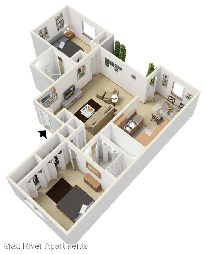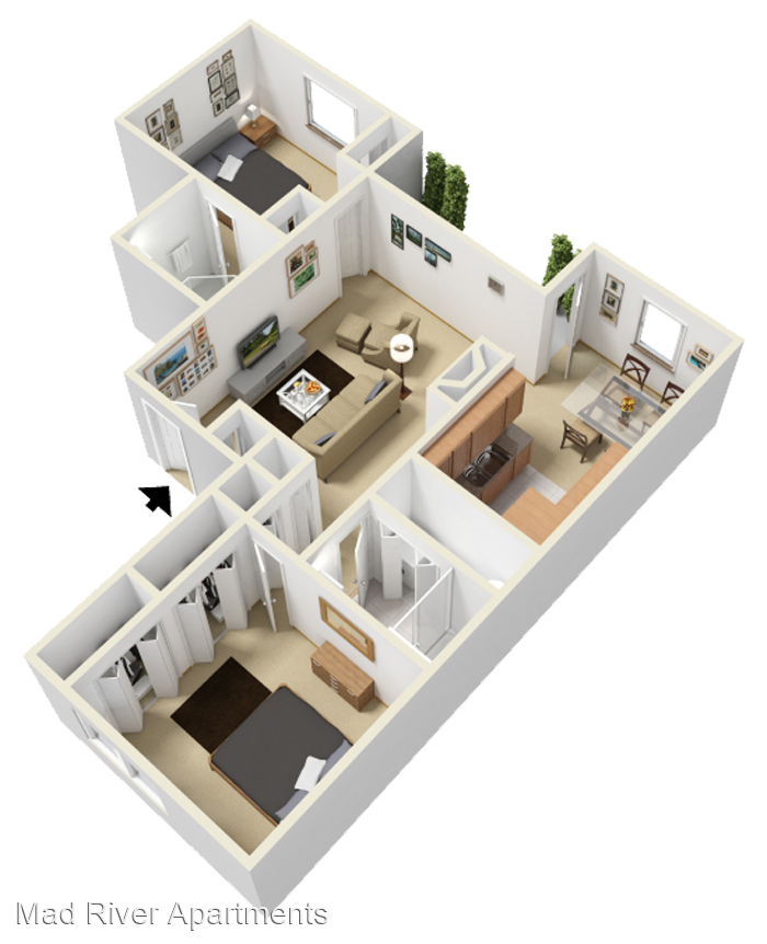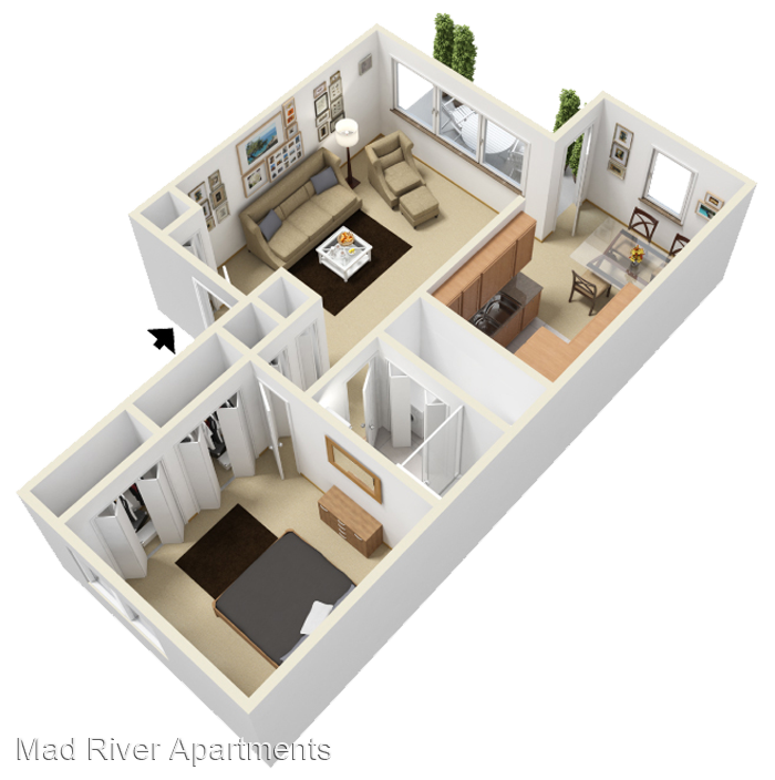 The Riverbend One - Spacious one bedroom unit with lots of natural light! You'll also enjoy a full-size washer & dryer and plenty of closet space. Vaulted ceilings are available in select units. Vaulted Ceilings* Walk-In Closets* Fireplaces* Washer/Dryer Cable Ready *In Select Units